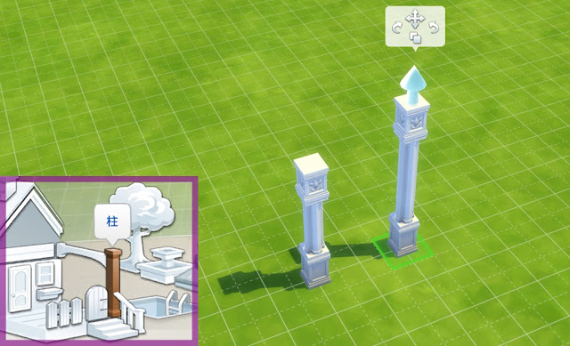そして柱はオブジェクトと競合しやすく、近くに植物を置きたくても柱が邪魔で置けない、屋根と重ねて置けない、無理やり屋根を置いたら柱が全部撤去された、なんてこともあるので、使いやすいとは言えないオブジェクトだとおもいます。